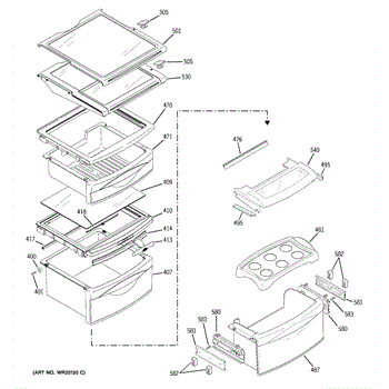 Parts for Ge PCF23NGWDBB: 09 - Fresh Food Shelves Parts