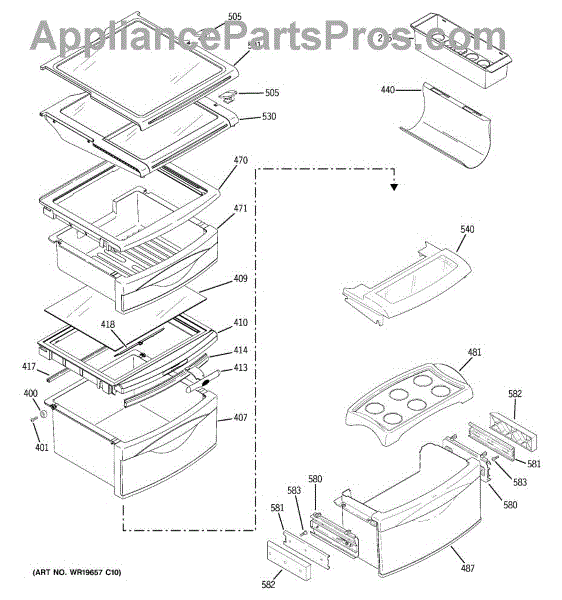 The Shelf Stop is an OEM replacement part for GE refrigerators. The shelf stop in your refrigerator is what locks the shelf into the refrigerator liner.The shelf stop features a small protruding nub that fits into pre-cut slots in shelf supports, preventing shelves from being inserted too far. Causes of a bad shelf stop can include wear over many years of shelf adjustment, or damage from impact with shelves. Symptoms of a bad shelf stop include: