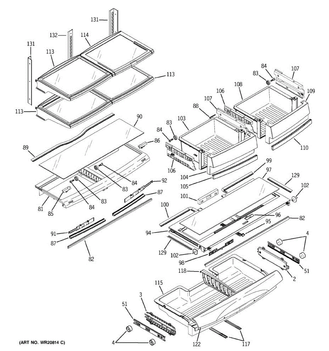 This vegetable pan cover forms the shelf directly above the crisper drawers, supporting food items and sealing the bins below. Replace a cracked or missing cover to restore stable storage and smooth, reliable drawer operation.