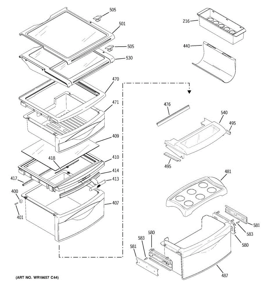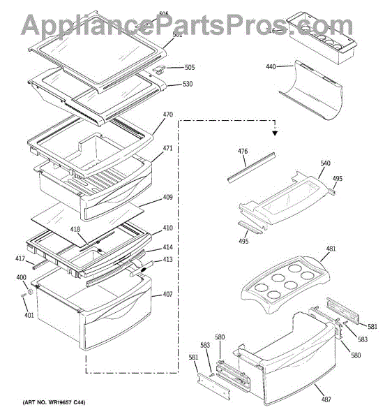 Parts for Ge PHE25PGTBFWW: 09 - Fresh Food Shelves Parts