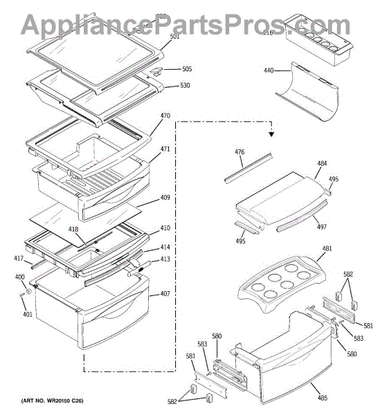 The Shelf Stop is an OEM replacement part for GE refrigerators. The shelf stop in your refrigerator is what locks the shelf into the refrigerator liner.The shelf stop features a small protruding nub that fits into pre-cut slots in shelf supports, preventing shelves from being inserted too far. Causes of a bad shelf stop can include wear over many years of shelf adjustment, or damage from impact with shelves. Symptoms of a bad shelf stop include: