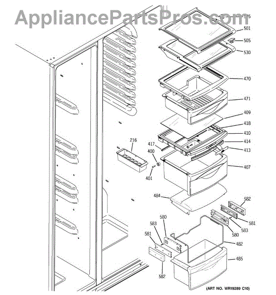 Covers the evaporator area and collects defrost water in your side-by-side refrigerator. Replace if cracked, broken, or missing to prevent leaks.