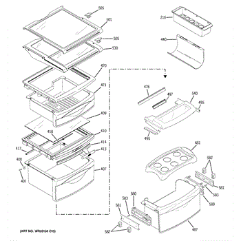 Pan frame assembly that forms the shelf and support structure for your refrigerator's Custom Cool or deli drawer. Replace if cracked, warped, or broken.
