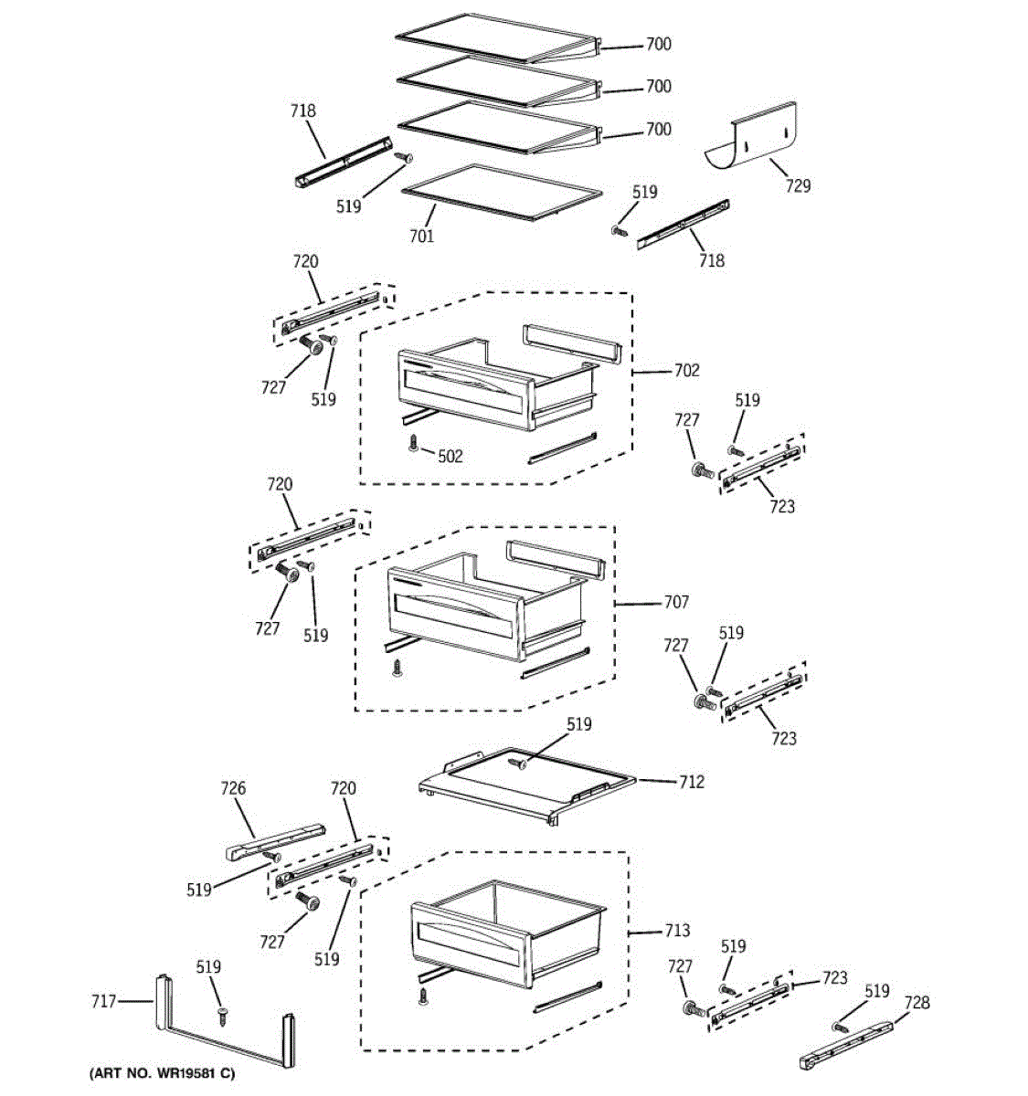 Parts for Ge PSB42LSRABV: 08 - Fresh Food Shelves Parts
