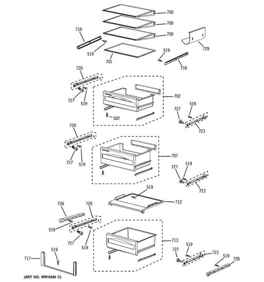 Parts for Ge PSB42LSRBV: Fresh Food Shelves Parts