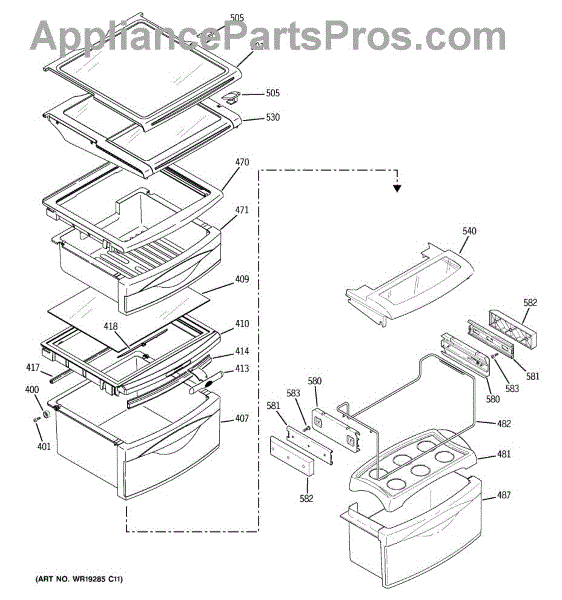 Parts for Ge PSC23SGRBSS: 09 - Fresh Food Shelves Parts