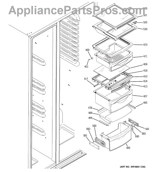 The Shelf Stop is an OEM replacement part for GE refrigerators. The shelf stop in your refrigerator is what locks the shelf into the refrigerator liner.The shelf stop features a small protruding nub that fits into pre-cut slots in shelf supports, preventing shelves from being inserted too far. Causes of a bad shelf stop can include wear over many years of shelf adjustment, or damage from impact with shelves. Symptoms of a bad shelf stop include: