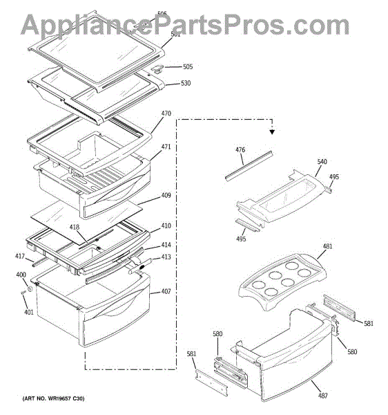The Shelf Stop is an OEM replacement part for GE refrigerators. The shelf stop in your refrigerator is what locks the shelf into the refrigerator liner.The shelf stop features a small protruding nub that fits into pre-cut slots in shelf supports, preventing shelves from being inserted too far. Causes of a bad shelf stop can include wear over many years of shelf adjustment, or damage from impact with shelves. Symptoms of a bad shelf stop include: