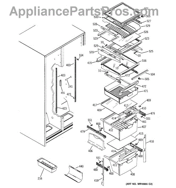 The Slide Assembly RH is an OEM replacement part for GE side-by-side refrigerators. As a replaceable sub-assembly, it restores smooth extension of plastic vegetable/multi-purpose slides on the right interior. The slide measures approximately 16 inches.