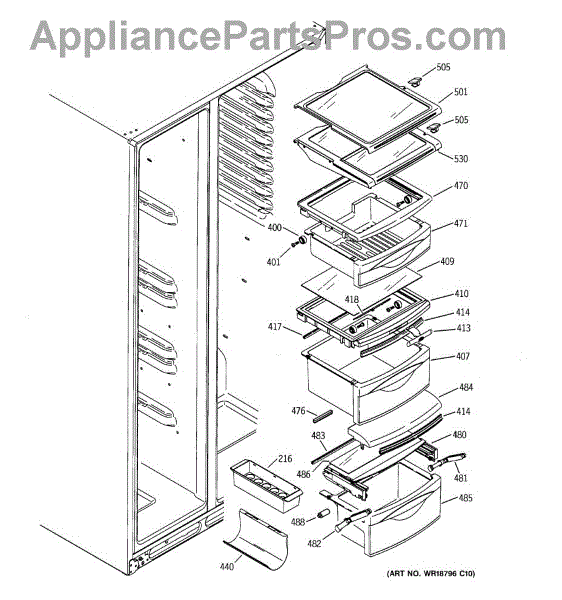 The Drawer Cover is an OEM replacement part for select GE refrigerator vegetable and deli drawers. It protects stored contents from dehydration, contaminants and prolonged illumination while keeping the drawers light-sealed. Proper drawer insulation optimizes food storage conditions. Causes of a bad drawer cover can include cracks and breaks from repeated drawer opening/closing stresses over time. Exposure to produce acids and moisture accelerates degradation of plastic sealing surfaces. Symptoms include: