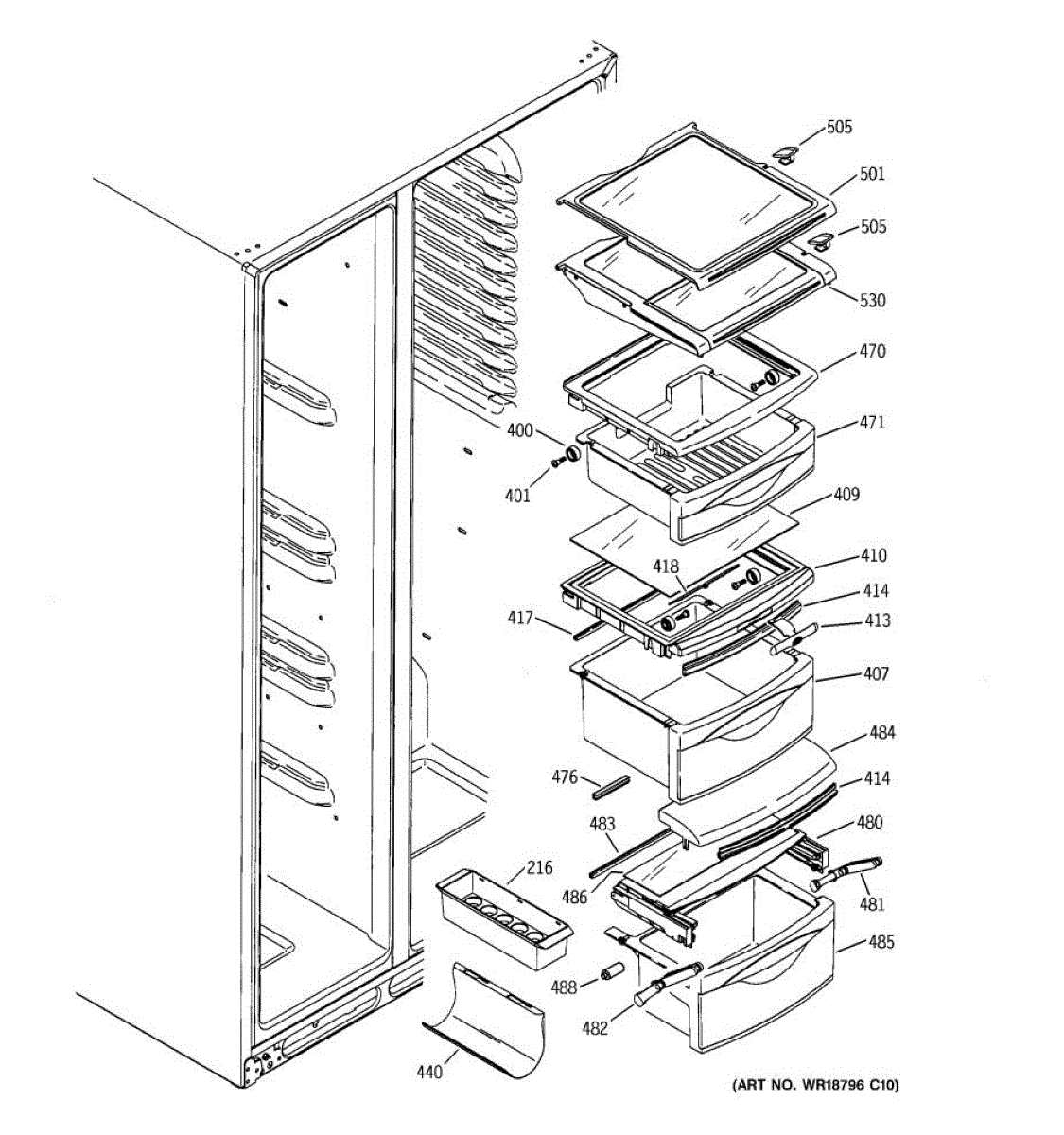 The Drawer Cover is an OEM replacement part for select GE refrigerator vegetable and deli drawers. It protects stored contents from dehydration, contaminants and prolonged illumination while keeping the drawers light-sealed. Proper drawer insulation optimizes food storage conditions. Causes of a bad drawer cover can include cracks and breaks from repeated drawer opening/closing stresses over time. Exposure to produce acids and moisture accelerates degradation of plastic sealing surfaces. Symptoms include: