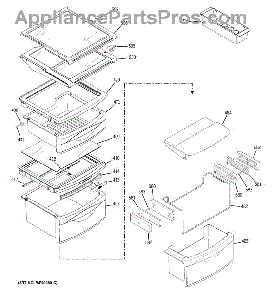 The Humidity Control Slide is an OEM replacement part for GE refrigerators. This slide is responsible for adjusting settings inside the refrigerator such as the crisper humidity levels. Proper functioning of the humidity control slide allows for optimization of storage conditions based on the specific items stored. Causes of a bad humidity control slide can include normal wear and tear over time, as well as issues like damage or obstruction that prevent the smooth operation of the slide mechanism. Symptoms of a bad humidity control slide include: