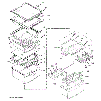 Plastic cover that sits over the crisper drawer in your refrigerator. Replace if cracked, broken, or missing to protect produce and maintain humidity.
