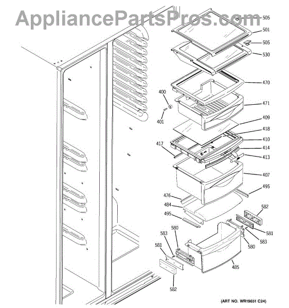 The Humidity Control Slide is an OEM replacement part for GE refrigerators. This slide is responsible for adjusting settings inside the refrigerator such as the crisper humidity levels. Proper functioning of the humidity control slide allows for optimization of storage conditions based on the specific items stored. Causes of a bad humidity control slide can include normal wear and tear over time, as well as issues like damage or obstruction that prevent the smooth operation of the slide mechanism. Symptoms of a bad humidity control slide include: