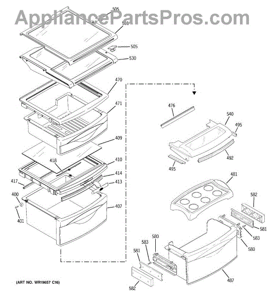 The Shelf Stop is an OEM replacement part for GE refrigerators. The shelf stop in your refrigerator is what locks the shelf into the refrigerator liner.The shelf stop features a small protruding nub that fits into pre-cut slots in shelf supports, preventing shelves from being inserted too far. Causes of a bad shelf stop can include wear over many years of shelf adjustment, or damage from impact with shelves. Symptoms of a bad shelf stop include: