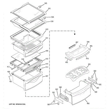 The Fruit and Vegetable Pan Shelf is an OEM part for GE refrigerators. Designed to provide sturdy support and optimal storage for fruit and vegetable pans, this shelf is an essential component for organizing and accessing your produce with ease. It fits snugly above the fruit and vegetable drawers, maximizing space utilization within the fridge and helping maintain the freshness of fruits and vegetables by ensuring proper air circulation around them.