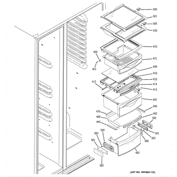 Covers the evaporator area and collects defrost water in your side-by-side refrigerator. Replace if cracked, broken, or missing to prevent leaks.