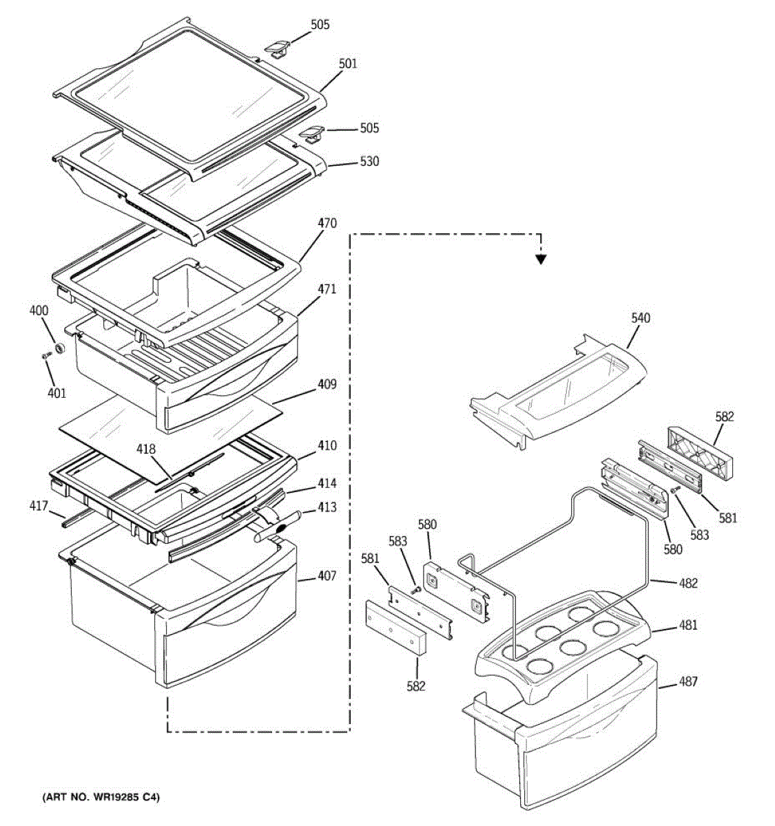 The Shelf Stop is an OEM replacement part for GE refrigerators. The shelf stop in your refrigerator is what locks the shelf into the refrigerator liner.The shelf stop features a small protruding nub that fits into pre-cut slots in shelf supports, preventing shelves from being inserted too far. Causes of a bad shelf stop can include wear over many years of shelf adjustment, or damage from impact with shelves. Symptoms of a bad shelf stop include: