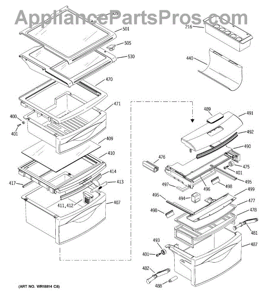 Replace your cracked or broken refrigerator snack pan cover. This assembly includes the glass insert and glide rails, restoring a finished look to your fridge.