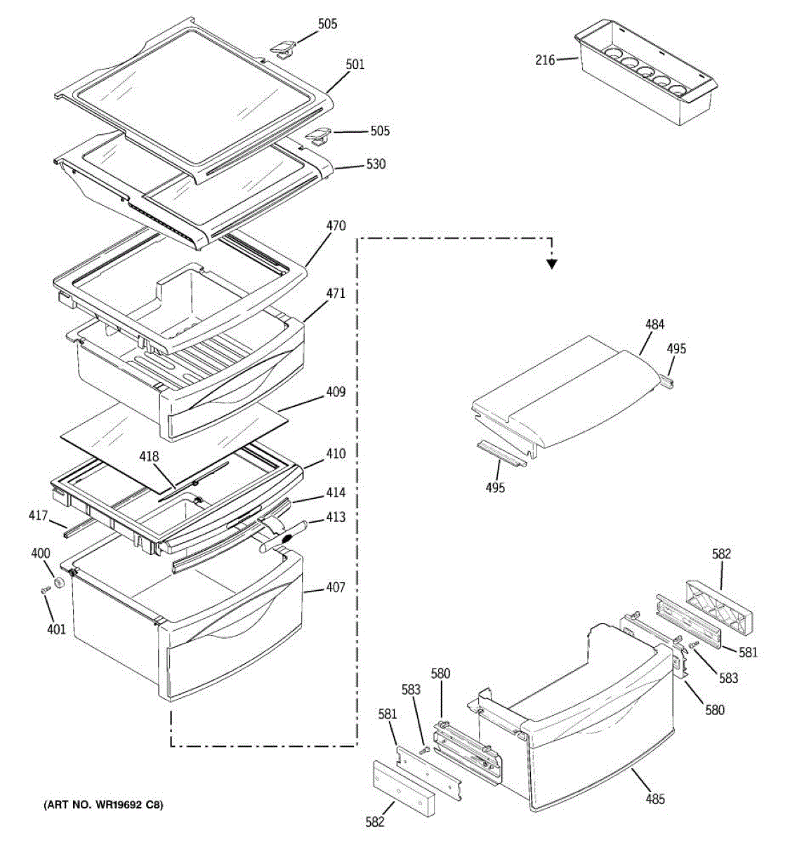 The Humidity Control Slide is an OEM replacement part for GE refrigerators. This slide is responsible for adjusting settings inside the refrigerator such as the crisper humidity levels. Proper functioning of the humidity control slide allows for optimization of storage conditions based on the specific items stored. Causes of a bad humidity control slide can include normal wear and tear over time, as well as issues like damage or obstruction that prevent the smooth operation of the slide mechanism. Symptoms of a bad humidity control slide include: