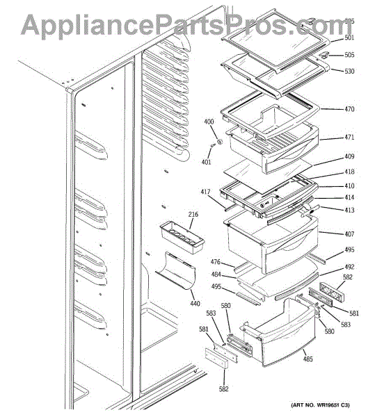 The Shelf Stop is an OEM replacement part for GE refrigerators. The shelf stop in your refrigerator is what locks the shelf into the refrigerator liner.The shelf stop features a small protruding nub that fits into pre-cut slots in shelf supports, preventing shelves from being inserted too far. Causes of a bad shelf stop can include wear over many years of shelf adjustment, or damage from impact with shelves. Symptoms of a bad shelf stop include: