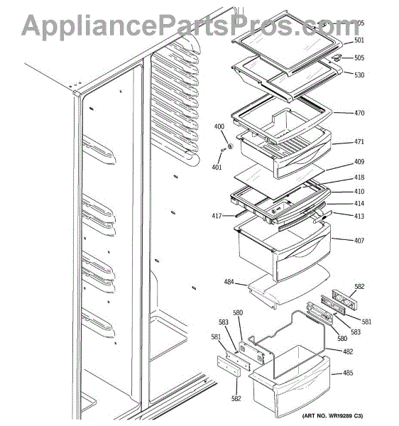 Parts for Ge PSR26MSPASS: 08 - Fresh Food Shelves Parts