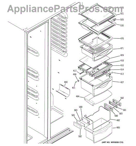 The Humidity Control Slide is an OEM replacement part for GE refrigerators. This slide is responsible for adjusting settings inside the refrigerator such as the crisper humidity levels. Proper functioning of the humidity control slide allows for optimization of storage conditions based on the specific items stored. Causes of a bad humidity control slide can include normal wear and tear over time, as well as issues like damage or obstruction that prevent the smooth operation of the slide mechanism. Symptoms of a bad humidity control slide include: