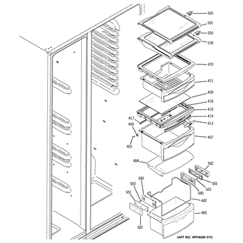 Replace a cracked or broken tuckaway shelf assembly in your side-by-side refrigerator. Restores the fold-away shelf mechanism for flexible storage.