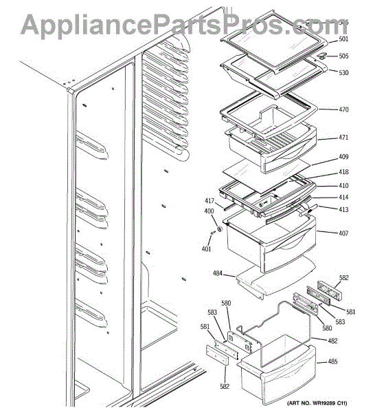 Replace your cracked or broken refrigerator middle drawer pan. This assembly includes wheels and installs in the fresh food section for deli items and produce.