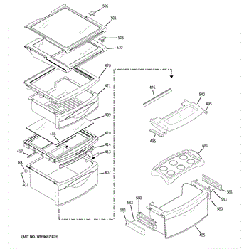 The Fruit and Vegetable Pan Shelf is an OEM part for GE refrigerators. Designed to provide sturdy support and optimal storage for fruit and vegetable pans, this shelf is an essential component for organizing and accessing your produce with ease. It fits snugly above the fruit and vegetable drawers, maximizing space utilization within the fridge and helping maintain the freshness of fruits and vegetables by ensuring proper air circulation around them.