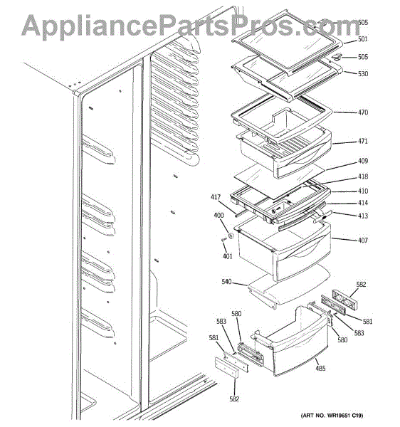 The Humidity Control Slide is an OEM replacement part for GE refrigerators. This slide is responsible for adjusting settings inside the refrigerator such as the crisper humidity levels. Proper functioning of the humidity control slide allows for optimization of storage conditions based on the specific items stored. Causes of a bad humidity control slide can include normal wear and tear over time, as well as issues like damage or obstruction that prevent the smooth operation of the slide mechanism. Symptoms of a bad humidity control slide include: