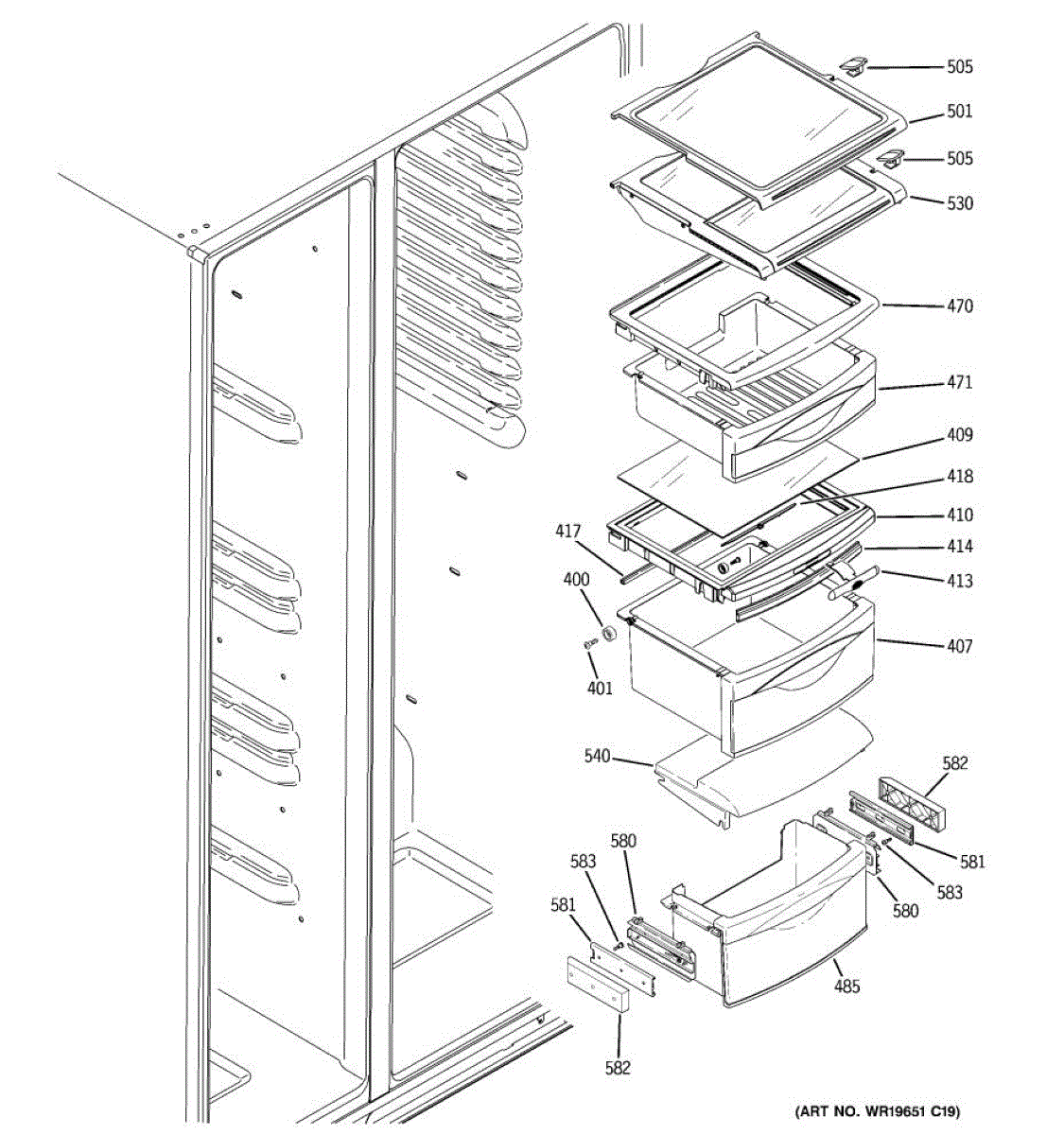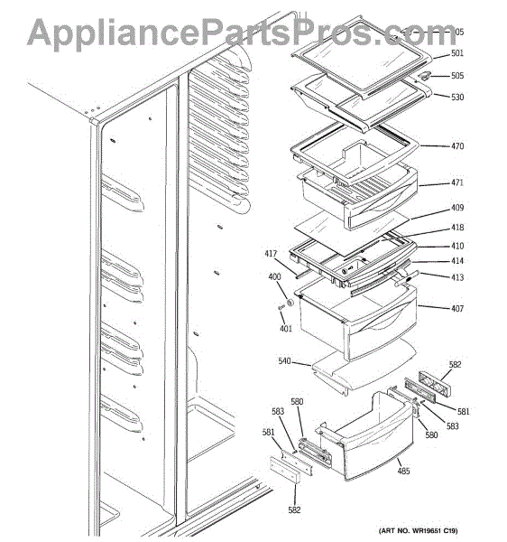 The Humidity Control Slide is an OEM replacement part for GE refrigerators. This slide is responsible for adjusting settings inside the refrigerator such as the crisper humidity levels. Proper functioning of the humidity control slide allows for optimization of storage conditions based on the specific items stored. Causes of a bad humidity control slide can include normal wear and tear over time, as well as issues like damage or obstruction that prevent the smooth operation of the slide mechanism. Symptoms of a bad humidity control slide include: