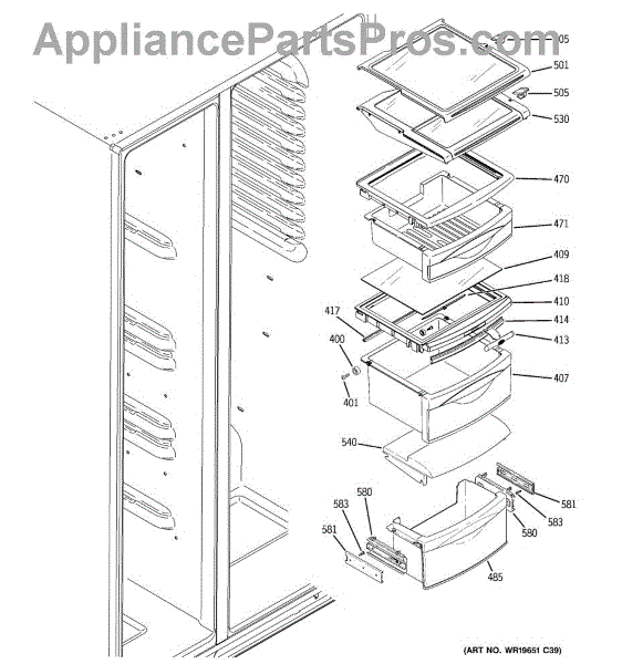 The Humidity Control Slide is an OEM replacement part for GE refrigerators. This slide is responsible for adjusting settings inside the refrigerator such as the crisper humidity levels. Proper functioning of the humidity control slide allows for optimization of storage conditions based on the specific items stored. Causes of a bad humidity control slide can include normal wear and tear over time, as well as issues like damage or obstruction that prevent the smooth operation of the slide mechanism. Symptoms of a bad humidity control slide include: