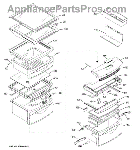 The Drawer Cover is an OEM replacement part for select GE refrigerator vegetable and deli drawers. It protects stored contents from dehydration, contaminants and prolonged illumination while keeping the drawers light-sealed. Proper drawer insulation optimizes food storage conditions. Causes of a bad drawer cover can include cracks and breaks from repeated drawer opening/closing stresses over time. Exposure to produce acids and moisture accelerates degradation of plastic sealing surfaces. Symptoms include:
