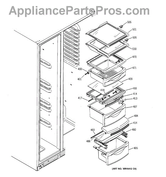 The Drawer Cover is an OEM replacement part for select GE refrigerator vegetable and deli drawers. It protects stored contents from dehydration, contaminants and prolonged illumination while keeping the drawers light-sealed. Proper drawer insulation optimizes food storage conditions. Causes of a bad drawer cover can include cracks and breaks from repeated drawer opening/closing stresses over time. Exposure to produce acids and moisture accelerates degradation of plastic sealing surfaces. Symptoms include: