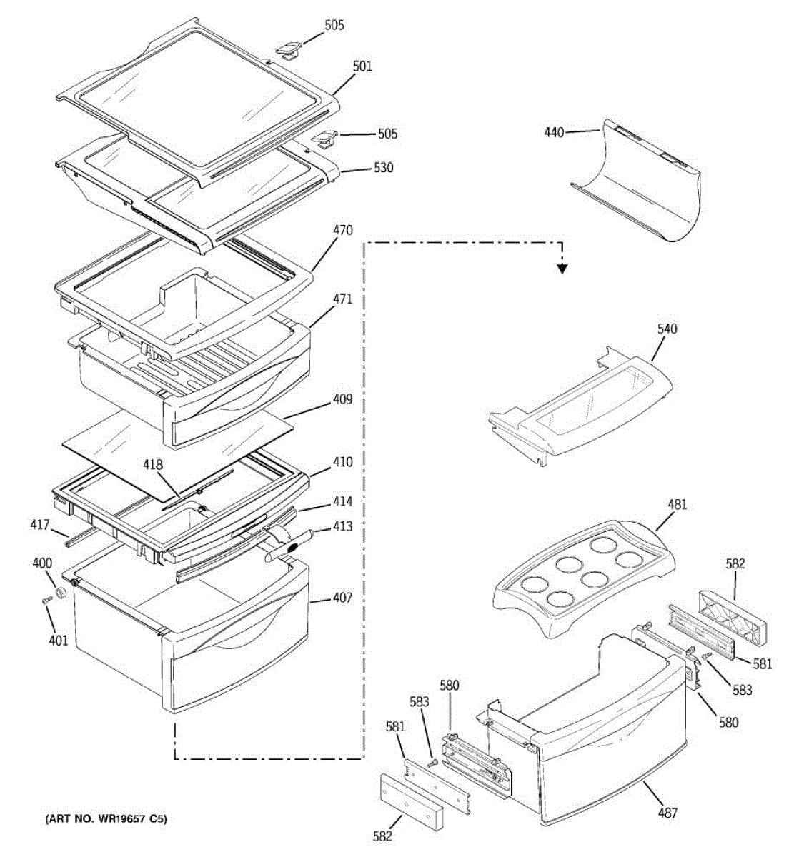 Replace a cracked or broken tuckaway shelf assembly in your side-by-side refrigerator. Restores the fold-away shelf mechanism for flexible storage.