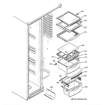 Replace a cracked or broken tuckaway shelf assembly in your side-by-side refrigerator. Restores the fold-away shelf mechanism for flexible storage.