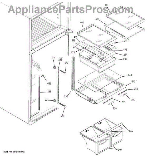 This left side snack pan slide is a genuine General Electric part, sold individually. This left side snack pan slide can be used as a replacement part for a refrigerator. This is the part on which the crisper drawer rests, and it facilitates the sliding in and out of the crisper drawer. The left side snack pan slide is made out of durable white plastic.The left side snack pan slide might have to be replaced at some point within the lifespan of a refrigerator if it is damaged to the point that it can no longer serve its function. This damage could take the form of cracks, punctures, or erosion to the plastic material as a result of general wear and tear or from a collision with a hard object that warps the component beyond functionality. If either of these things occur, the component should be removed and replaced with this genuine OEM replacement part.This is an OEM part sourced directly from the manufacturer. It is sold individually. This left side snack pan slide is compatible with the following appliance brands: General Electric and Kenmore.