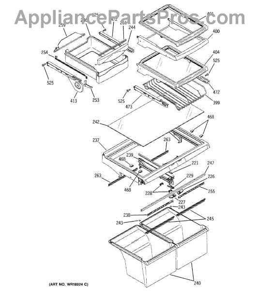 Parts for Ge PTS25SHPARBS: 06 - Fresh Food Shelves Parts