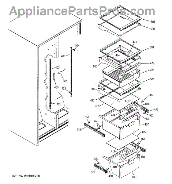 This replacement part is a snack pan slide rail, and it is intended for use in different types of appliances. This is a genuine replacement part made by General Electric. This part is able to hold up other trays and racks in the refrigerator and freezer so that extra shelf space can be utilized. These slide rails can also hold up trays that can support heavy bottles and drinks. A new snack pan slide rail might be needed if the current ones have become stripped and are unable to latch onto the shelving to support it. It is common that these parts can become brittle over time as exposure to low temperature wears down the plastic. Be sure the shelving of the appliance is clear before attempting to replace the slide rail. This is an OEM part sourced directly from the manufacturer. It is sold individually. This replacement part is compatible with different types of appliances made by General Electric.
