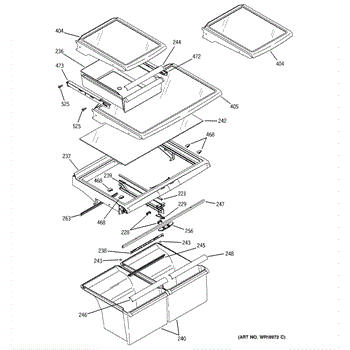 Slide bearing for refrigerator drawer rails. Enables smooth in-and-out drawer movement. Replace if cracked, worn, or causing drawers to stick or jam.