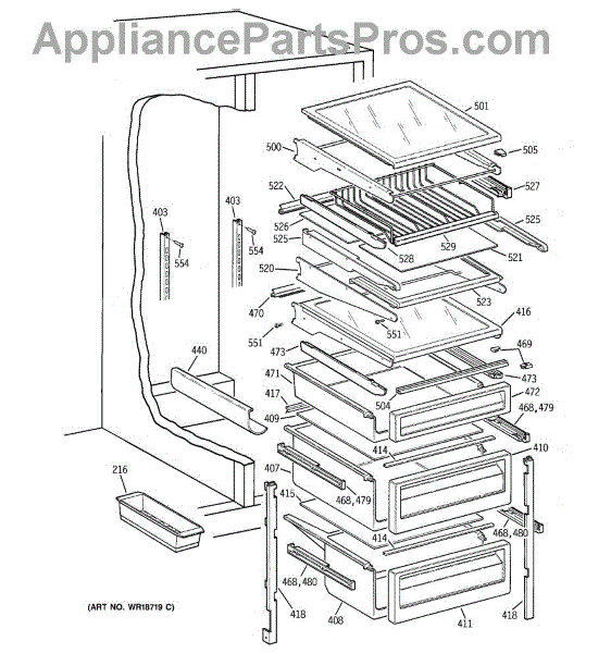 Parts for Ge TFB26SPDABS: 05 - Fresh Food Shelves Parts