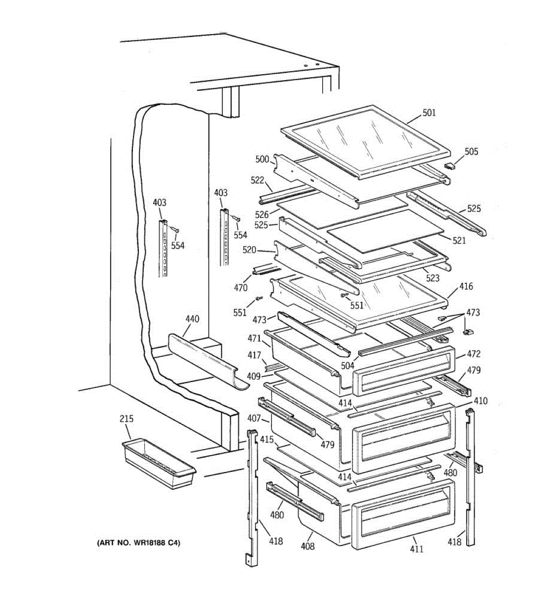 Parts for Ge TFG24PRXCBB: 05 - Fresh Food Shelves Parts