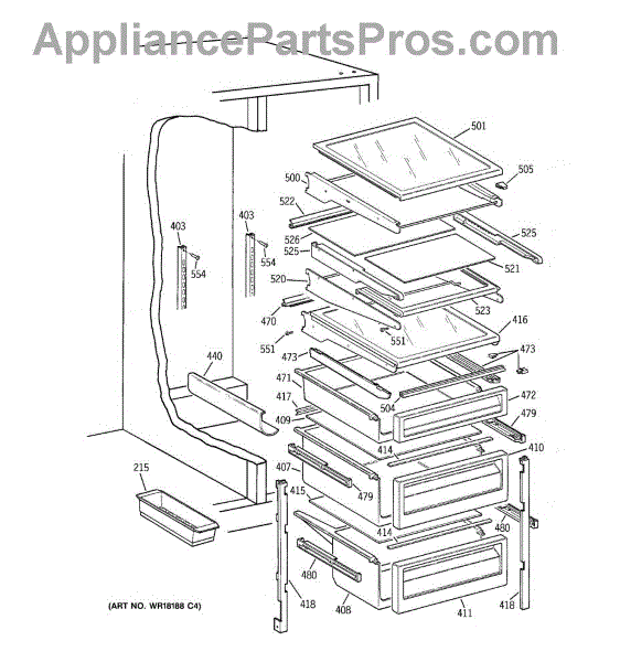 Parts for Ge TFG24PRXCWW: 05 - Fresh Food Shelves Parts