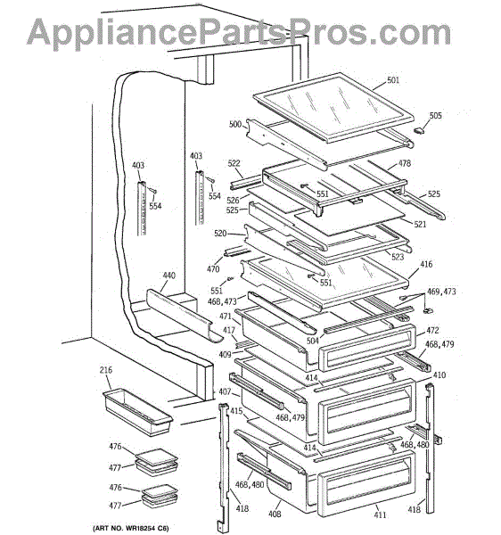 Parts for Ge TFG28PFCCBS: 06 - Fresh Food Shelves Parts