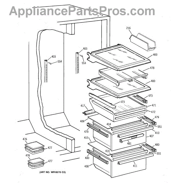 This replacement part is a snack pan slide rail, and it is intended for use in different types of appliances. This is a genuine replacement part made by General Electric. This part is able to hold up other trays and racks in the refrigerator and freezer so that extra shelf space can be utilized. These slide rails can also hold up trays that can support heavy bottles and drinks. A new snack pan slide rail might be needed if the current ones have become stripped and are unable to latch onto the shelving to support it. It is common that these parts can become brittle over time as exposure to low temperature wears down the plastic. Be sure the shelving of the appliance is clear before attempting to replace the slide rail. This is an OEM part sourced directly from the manufacturer. It is sold individually. This replacement part is compatible with different types of appliances made by General Electric.