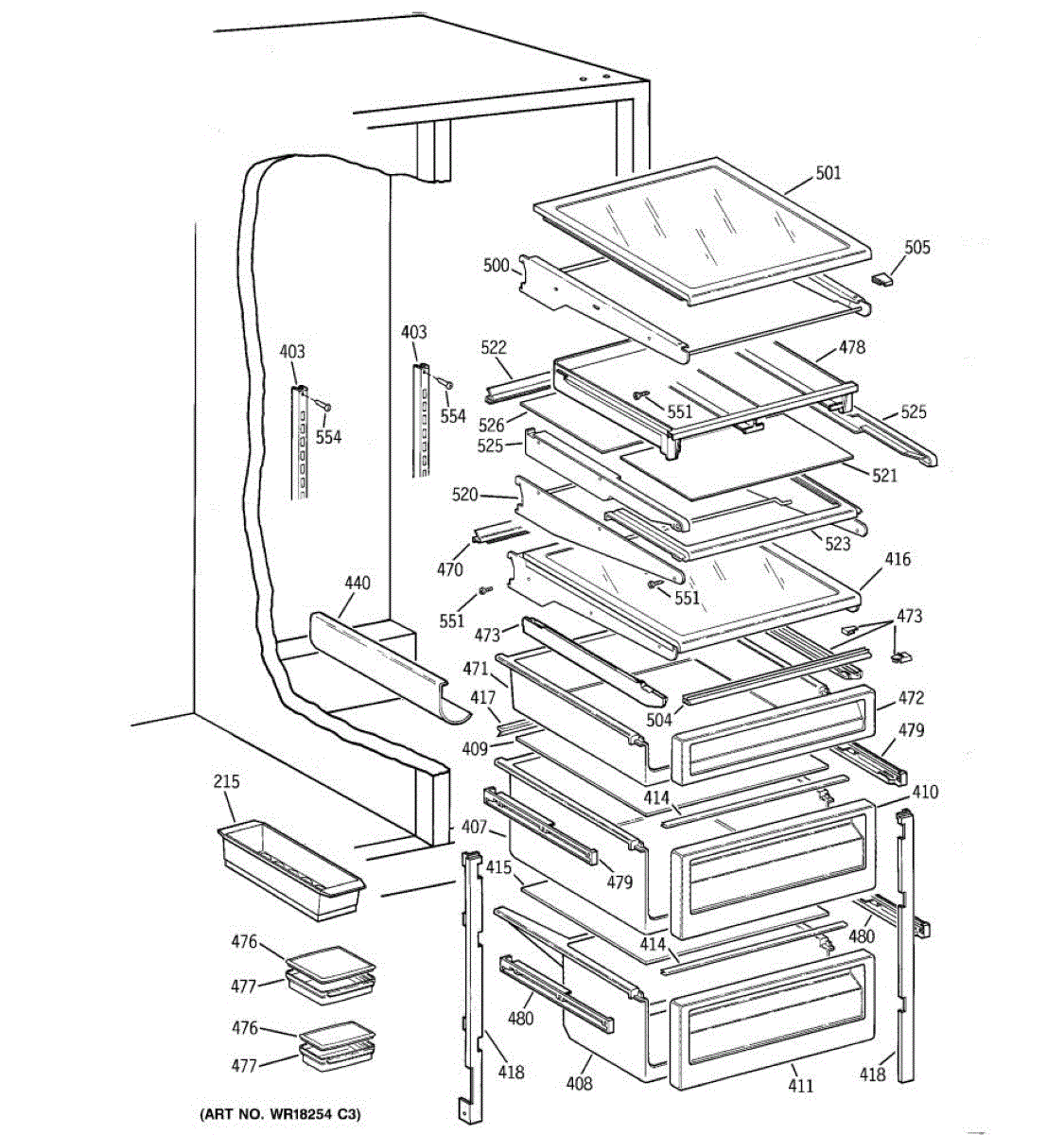 Causes relate to typical wear and tear over time under regular use. Improper loading of shelves can also potentially damage slide machinery.