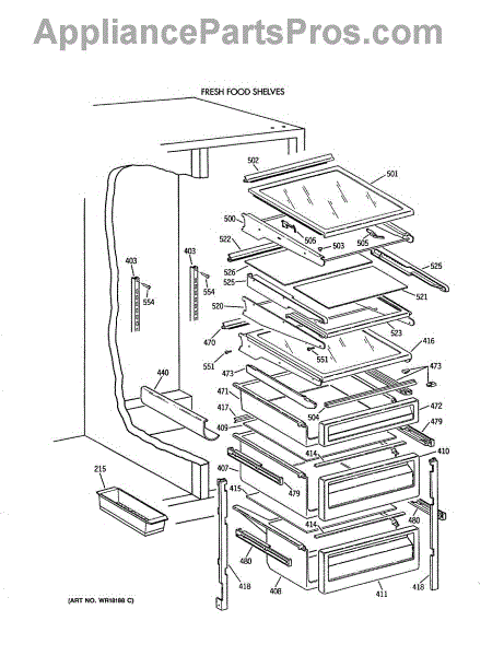 Parts for Ge TFK22PRXAAA: 05 - Fresh Food Shelves Parts