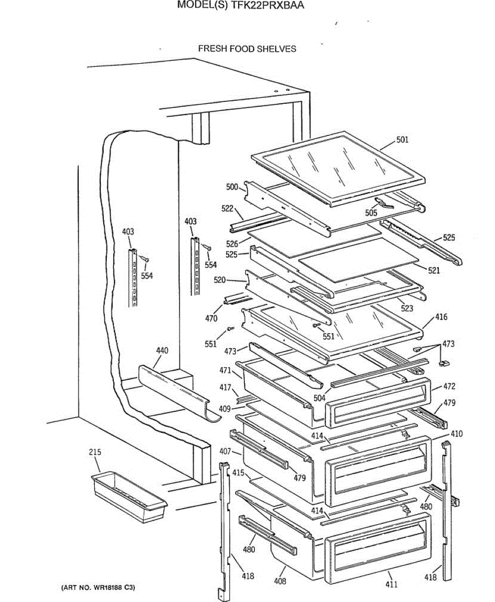 Parts for Ge TFK22PRXBAA: 05 - Fresh Food Shelves Parts