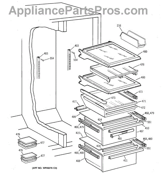 This replacement part is a snack pan slide rail, and it is intended for use in different types of appliances. This is a genuine replacement part made by General Electric. This part is able to hold up other trays and racks in the refrigerator and freezer so that extra shelf space can be utilized. These slide rails can also hold up trays that can support heavy bottles and drinks. A new snack pan slide rail might be needed if the current ones have become stripped and are unable to latch onto the shelving to support it. It is common that these parts can become brittle over time as exposure to low temperature wears down the plastic. Be sure the shelving of the appliance is clear before attempting to replace the slide rail. This is an OEM part sourced directly from the manufacturer. It is sold individually. This replacement part is compatible with different types of appliances made by General Electric.